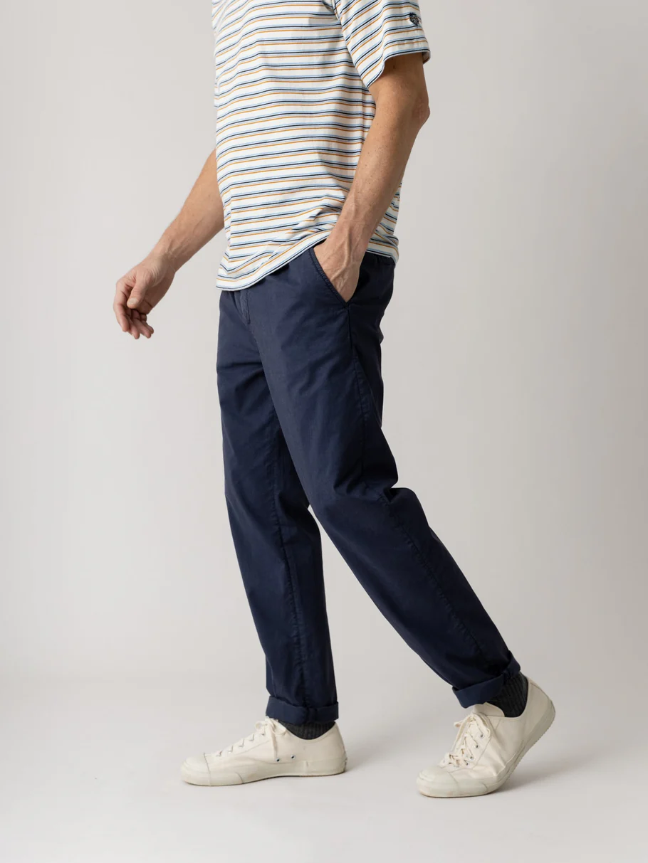 Es muss nicht immer Jeans sein. Die moderne Hose überzeugt mit Details wie Bundfalten und elastischem Bund. Die luftige und weiche Qualität sorgt dabei für höchsten Tragekomfort.
